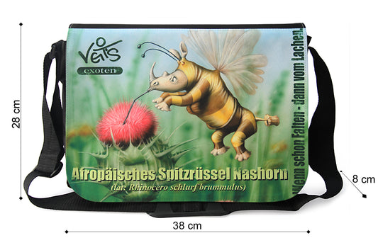 Veit`S Gute Laune Tasche, Schultertasche, Laptoptasche mit Exoten-Motiv "Afropäisches Spitzrüssel Nashorn"