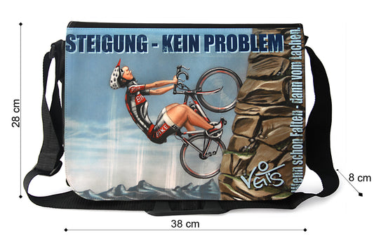 Tasche, Schultertasche, Laptoptasche mit Motiv "Radfahrer - Steigung kein Problem", Veit`S Gute Laune Taschen