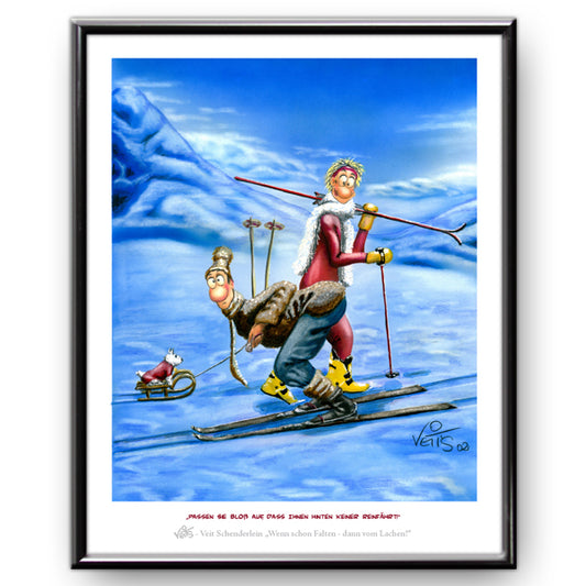 Bild Karikatur Cartoon Skifahren Abfahrt