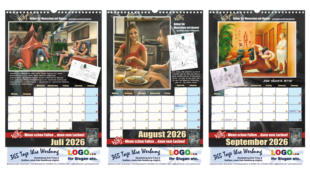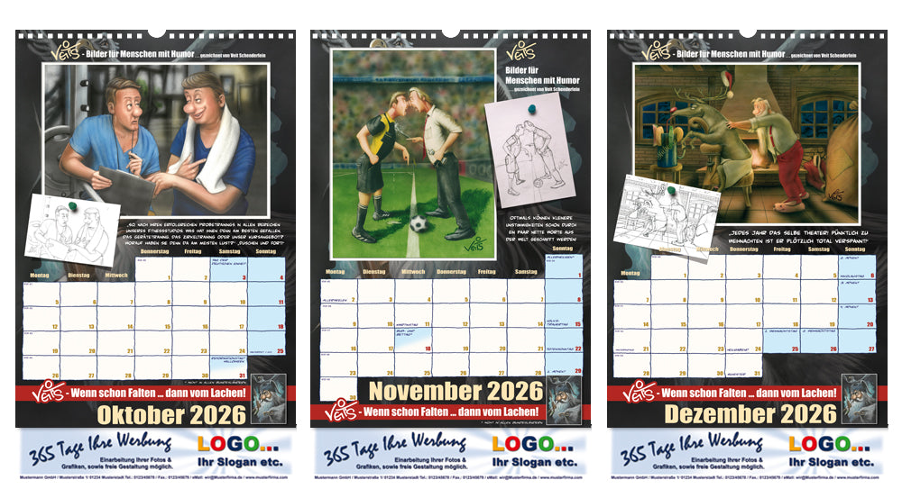 Veit`S Karikaturen/Cartoon-Kalender „Voll das Leben 2026“ mit Ihrer Werbung.