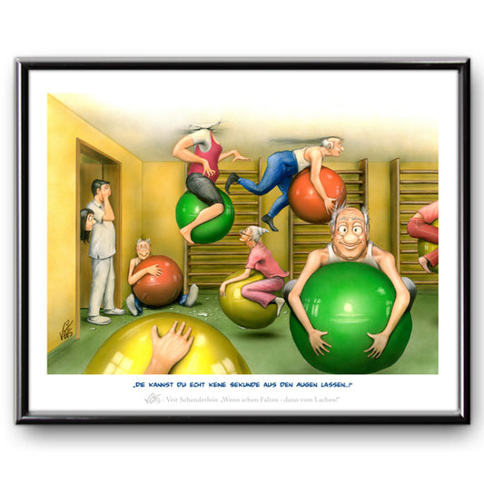 Bild Karikatur Cartoon Physiotherapie Krankengymnastik Pezzibälle