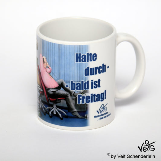 Tassen, Kaffeebecher, Kaffeetassen, Veit`S Gute Laune Tassen, "Halt durch bald ist Freitag" fürs Büro