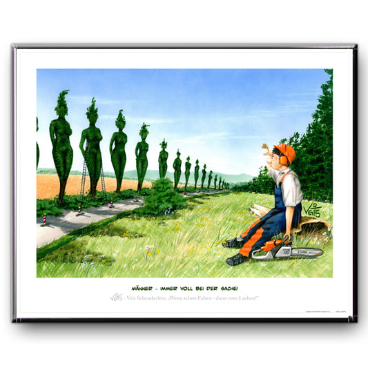 Bild Karikatur Cartoon Arbeit Gartenbau Gärtner Männer Baumbeschneidung