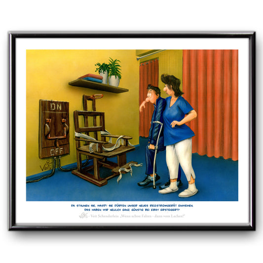 Bild Karikatur Cartoon Physiotherapie Reizstrom