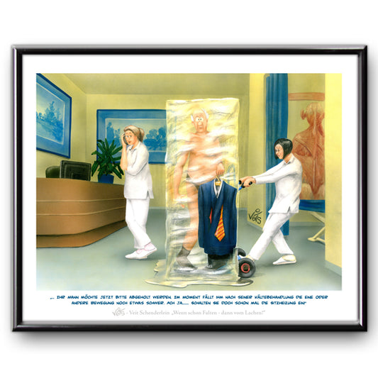 Bild Karikatur Cartoon Physiotherapie Kältetherapie