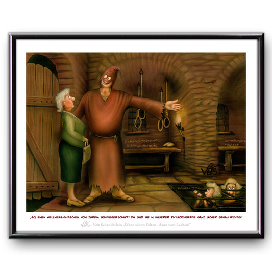 Bild Karikatur Cartoon Physiotherapie Wellness Schwiegermutter