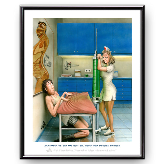 Bild Karikatur Cartoon Arzt Arztpraxis Krankenschwester Spritze