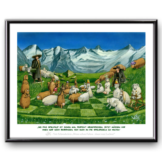 Bild Karikatur Cartoon Schach Schäfer Schafe Schachspiel