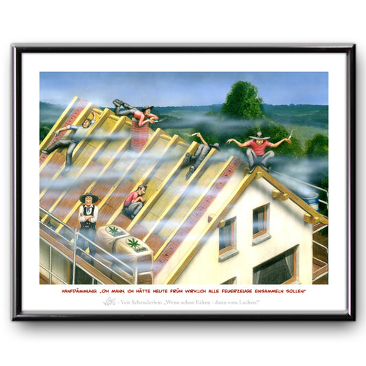 Bild Karikatur Cartoon Dachdecker Dach Hanfdämmung