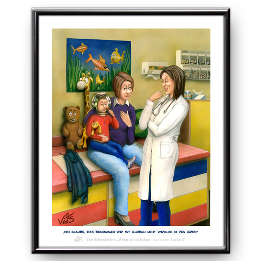 Bild Karikatur Cartoon Kinderarzt Kinderärztin Arztpraxis