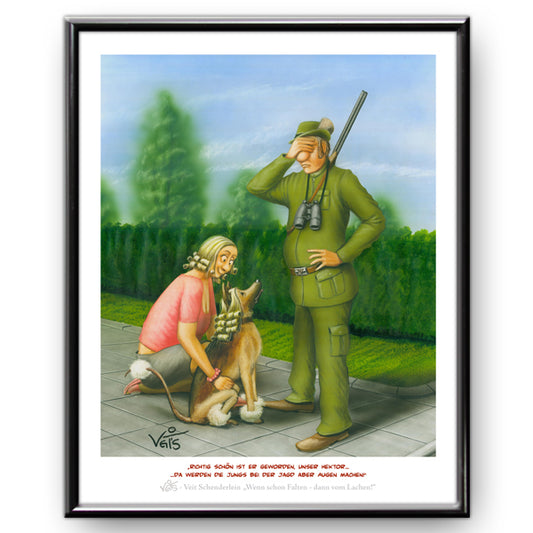 Bild Karikatur Cartoon Jäger Hund Jagd