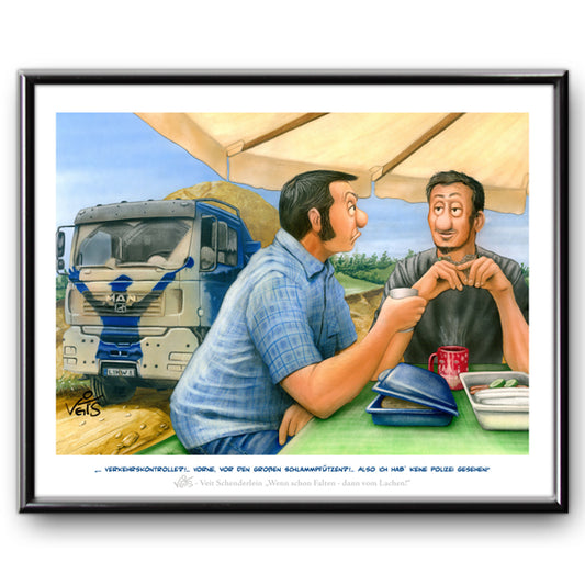 Bild Karikatur Cartoon LKW, Kraftfahrer, LKW-Fahrer, Verkehrskontrolle, Polizei